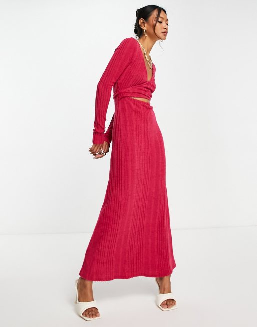 ASOS DESIGN - Vestito lungo morbidissimo rosa a maniche lunghe con davanti incrociato