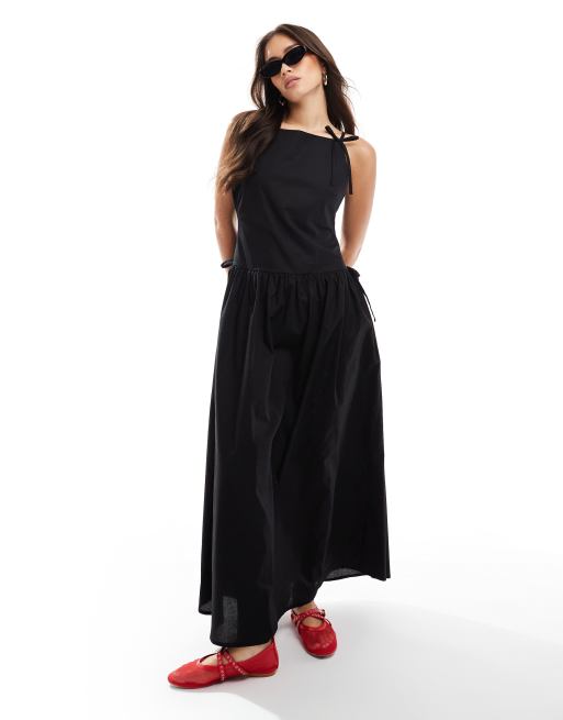 ASOS DESIGN - Vestito lungo nero con fiocchi e scollo a barchetta