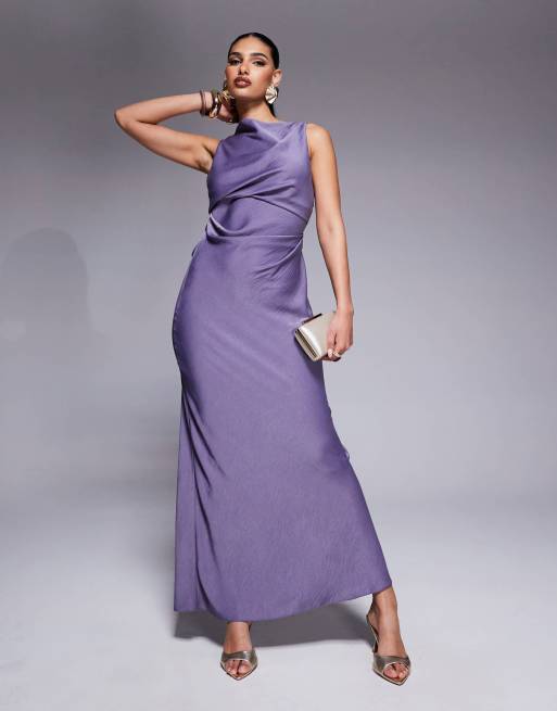 ASOS DESIGN - Vestito lungo viola con corpino drappeggiato e scollo ad anello sulla schiena