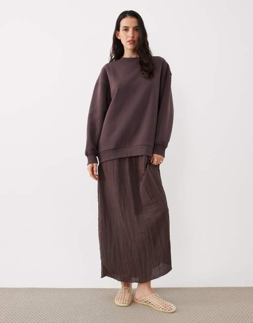 ASOS DESIGN - Vestito maglia ibrido color cioccolato