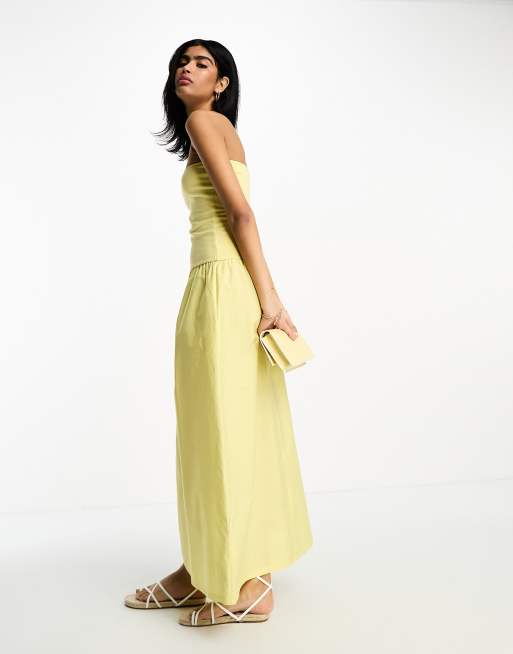 ASOS DESIGN - Vestito midi a fascia con gonna voluminosa gialla