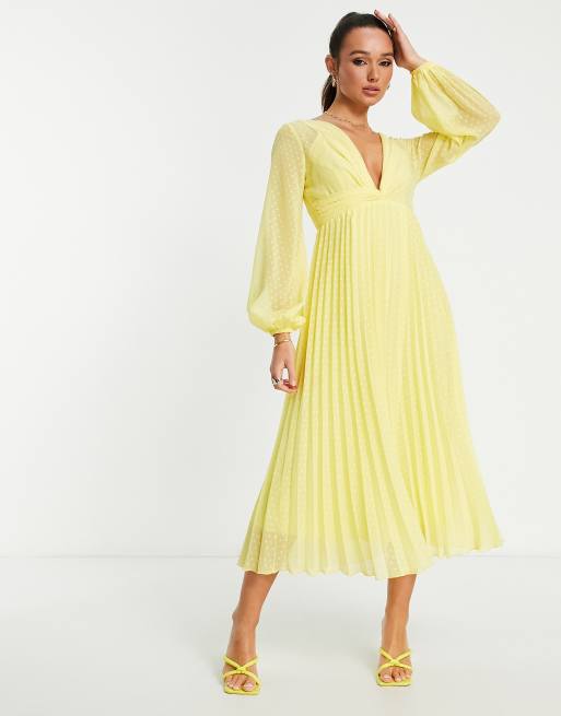 ASOS DESIGN - Vestito midi a pieghe con incrocio frontale in tessuto plumetis giallo