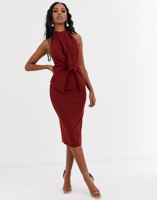 ASOS DESIGN - Vestito midi accollato con schiena scoperta