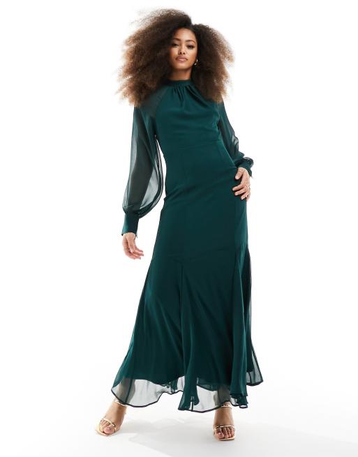 ASOS DESIGN - Vestito midi accollato verde bosco con fondo godet