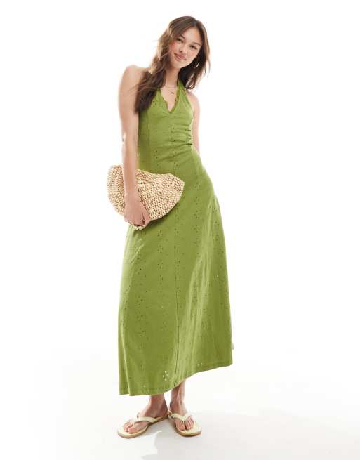 ASOS DESIGN - Vestito midi allacciato al collo in pizzo verde oliva