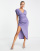 ASOS DESIGN - Vestito midi blu con spacco, scollo profondo e arricciatura laterale