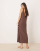 ASOS DESIGN - Vestito midi color cioccolato amaro con scollo rotondo in lino