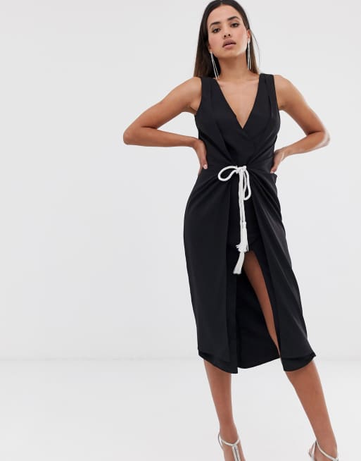 ASOS DESIGN - Vestito midi con allacciatura con corda in vita