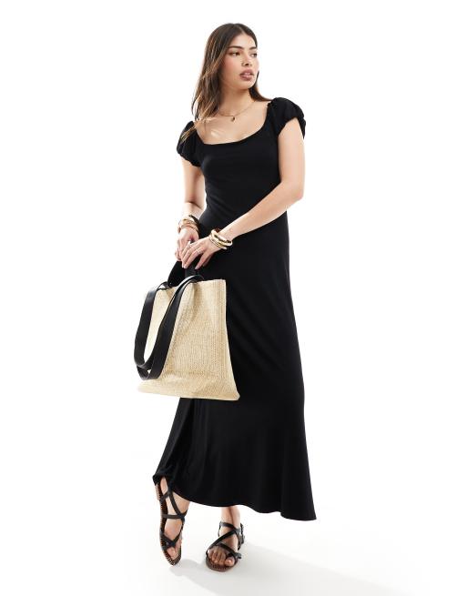 ASOS DESIGN - Vestito midi con maniche a palloncino e scollo squadrato nero