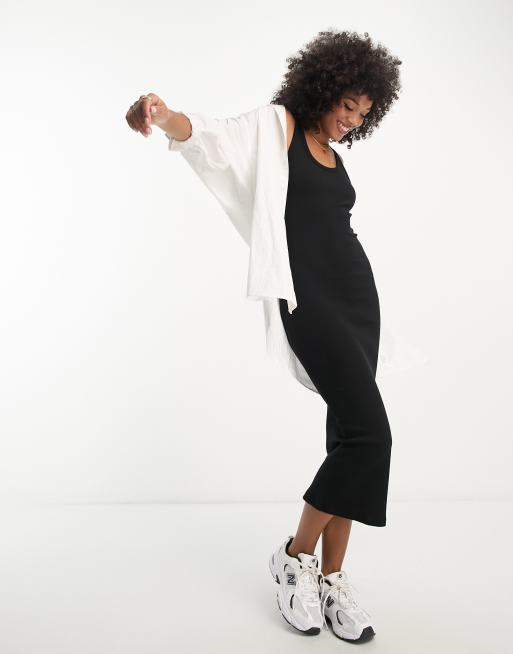 ASOS DESIGN - Vestito midi con spalline sottili nero a coste con scollo rotondo