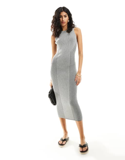 ASOS DESIGN - Vestito midi in maglia a pieghe grigio con finiture a contrasto