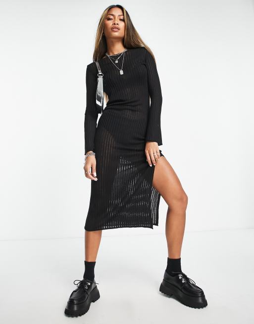 ASOS DESIGN - Vestito midi in maglia nera traforata