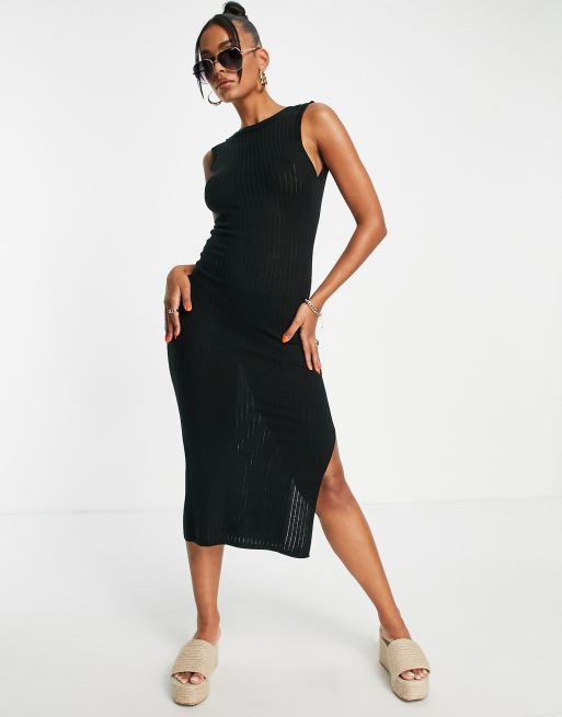 ASOS DESIGN - Vestito midi in maglia traforata con scollo profondo sul retro nero