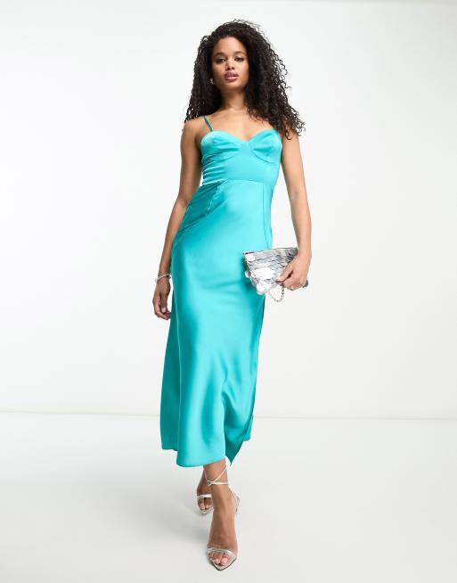 ASOS DESIGN - Vestito midi in raso turchese con bustino con coppe