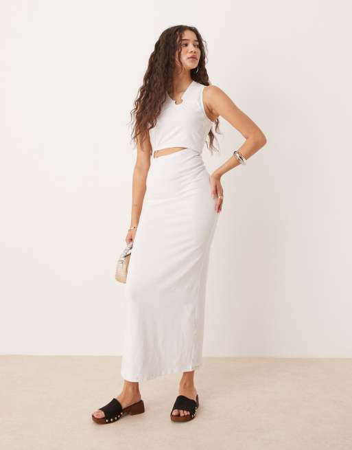 ASOS DESIGN - Vestito midi senza maniche con anello e cut-out