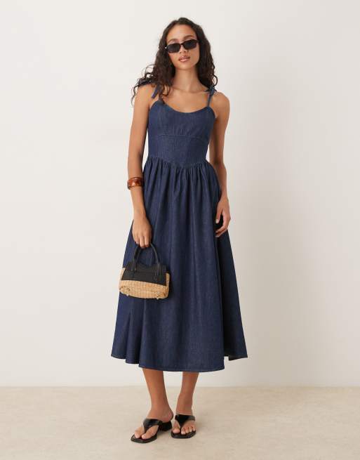 ASOS DESIGN - Vestito midi stile ballerina in denim indaco