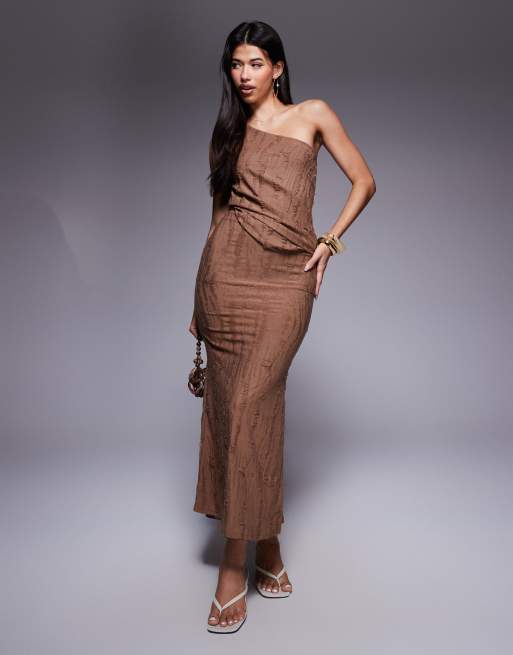 ASOS DESIGN - Vestito monospalla drappeggiato color cioccolato in tessuto effetto smagliato