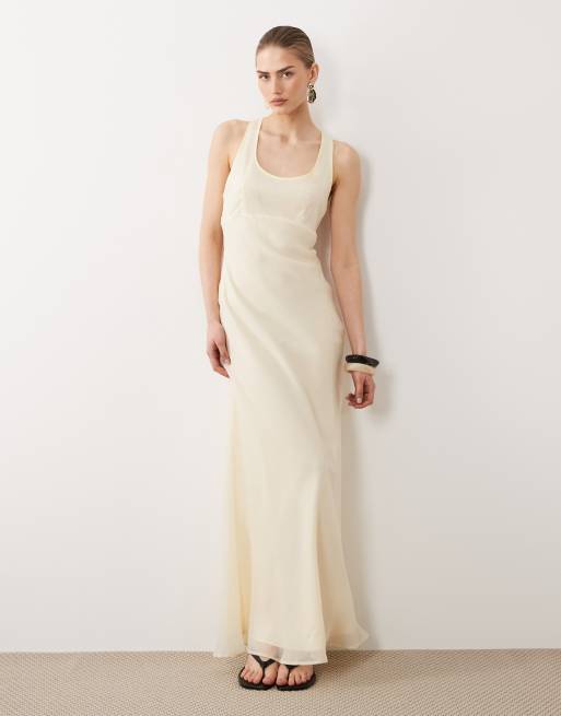 ASOS DESIGN - Vestito sottoveste lungo giallo pallido con scollo rotondo e finiture a contrasto