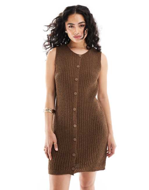 ASOS DESIGN - Vestito stile gilet in maglia marrone cioccolato testurizzato con bottoni