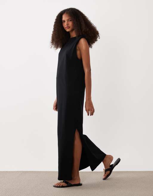 ASOS DESIGN - Vestito T-shirt midi nero con spalline imbottite
