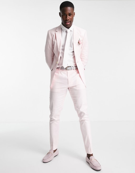 ASOS DESIGN Wedding - Abito in misto lino rosa pastello