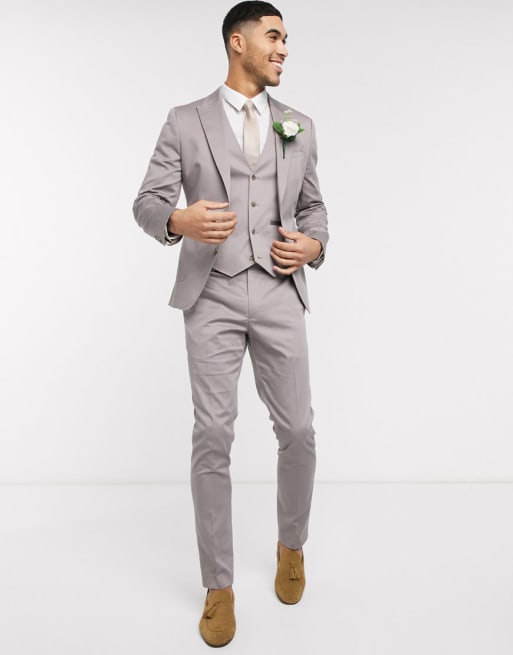 ASOS DESIGN wedding - Abito skinny in cotone elasticizzato grigio