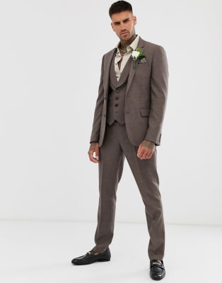 ASOS DESIGN Wedding - Abito skinny in twill marrone tenue