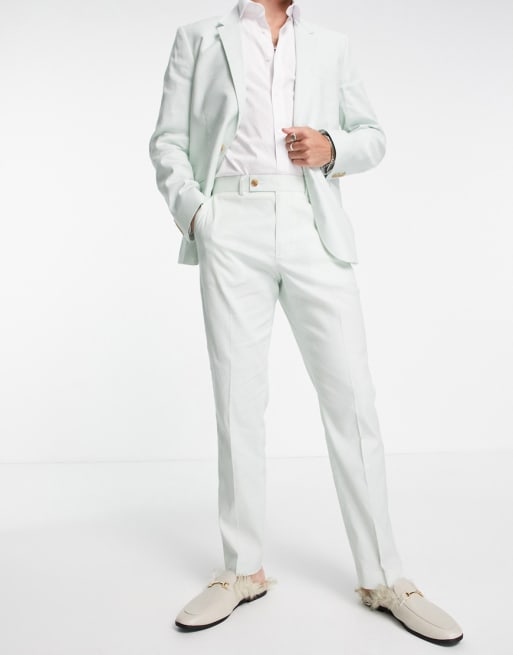 ASOS DESIGN Wedding - Abito slim in misto lino e cotone verde pastello