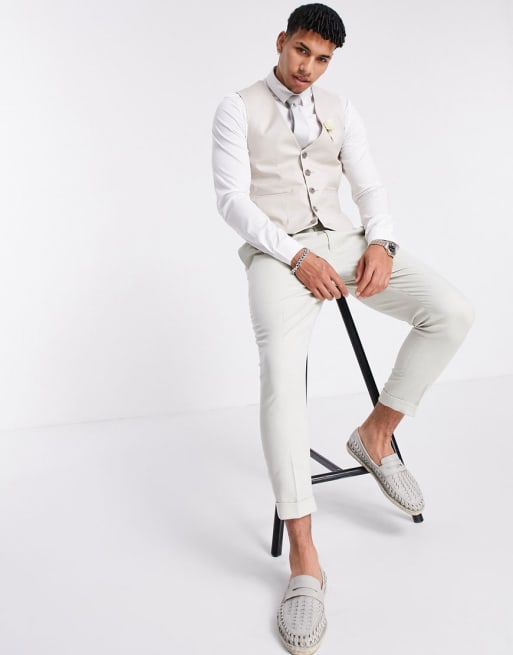 ASOS DESIGN Wedding - Abito super skinny in lino e cotone color pietra