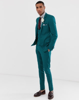 ASOS DESIGN Wedding - Abito super skinny in lino verde-azzurro