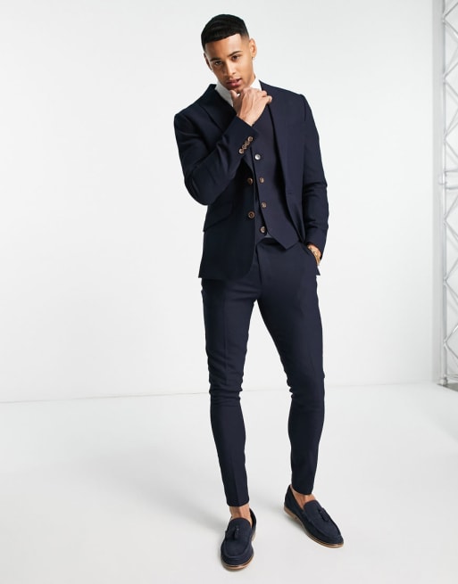 ASOS DESIGN Wedding - Abito super skinny micro testurizzato blu navy