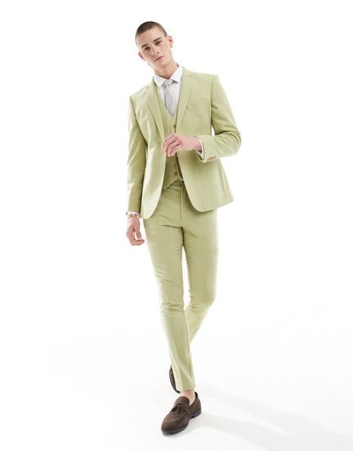 ASOS DESIGN Wedding - Coordinato skinny in misto lana color oliva con intreccio a cesto