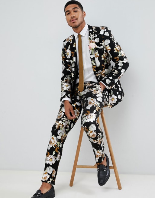 ASOS DESIGN Wedding - Vestito skinny nero con motivo laminato a fiori