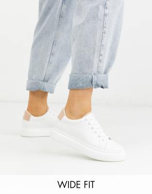 ASOS DESIGN Wide Fit - Doro - Sneakers chunky stringate bianco e beige