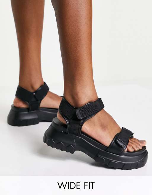 ASOS DESIGN Wide Fit - Fly By - Sandali chunky sportivi in nero a pianta larga