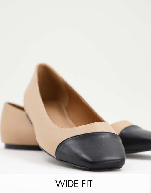 ASOS DESIGN Wide Fit - Locket - Ballerine con punta squadrata in beige e nero