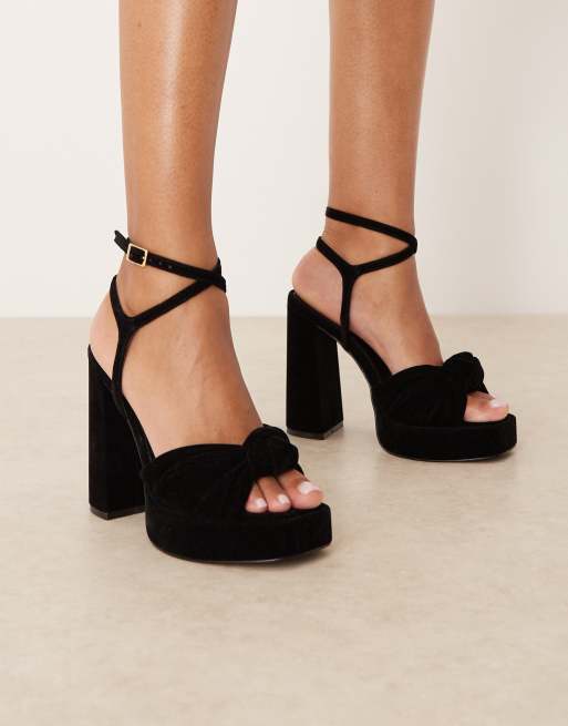ASOS DESIGN Wide Fit - Nutshell - Sandali a pianta larga con tacco largo e plateau in velluto nero con nodo