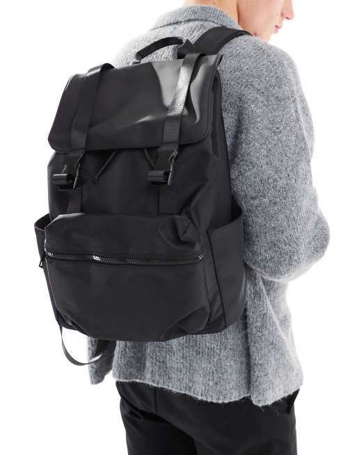 ASOS DESIGN - Zaino gommato nero in nylon con spallacci doppi