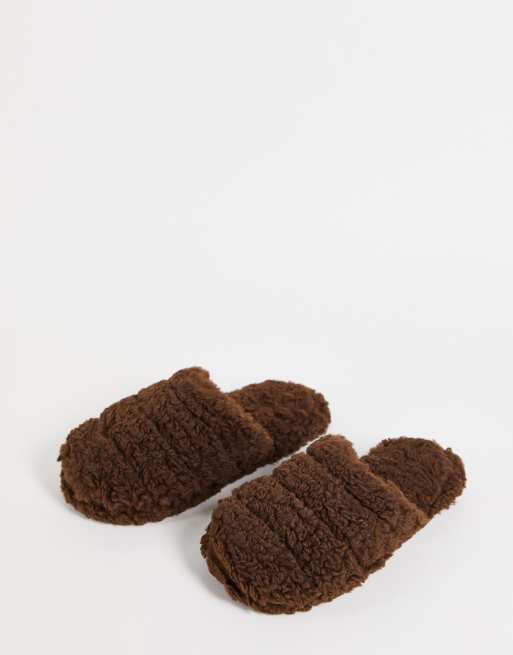 ASOS DESIGN - Zoe - Pantofole trapuntate in pile borg cioccolato