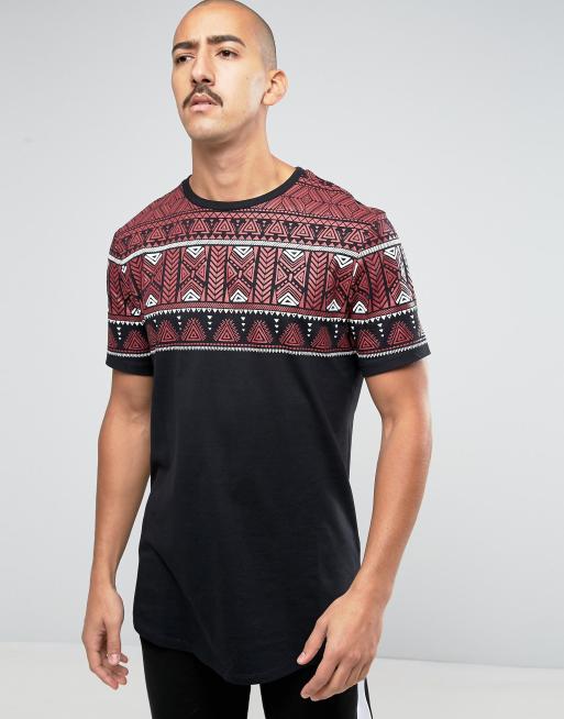 ASOS - T-shirt extra lunga con stampa azteca colorata sul carré e fondo arrotondato