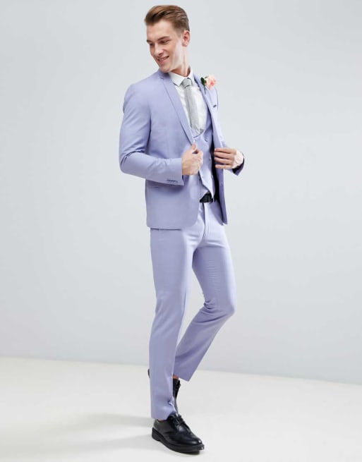 ASOS Wedding - Abito skinny blu pallido in 100% lana