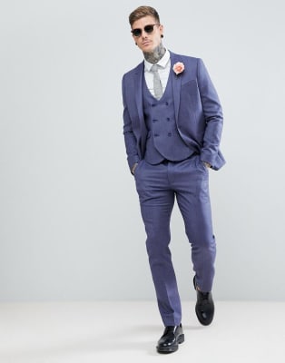 ASOS WEDDING - Abito slim blu profondo in 100% lana merino