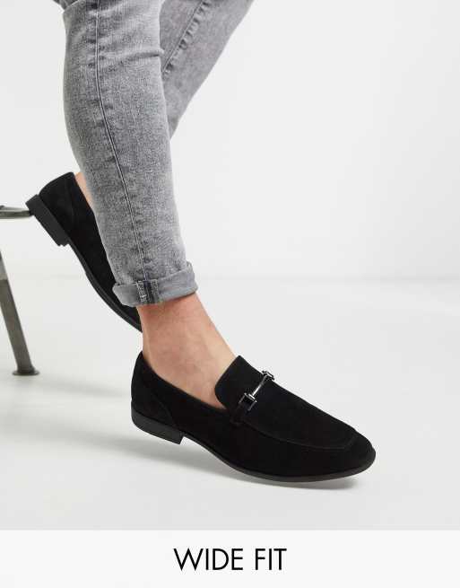 ASOS DESIGN - Mocassini a pianta larga in camoscio sintetico nero con morsetto