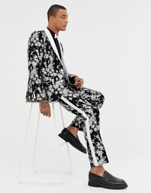 ASOS EDITION - Abito stile smoking slim in jacquard a fiori monocromatico