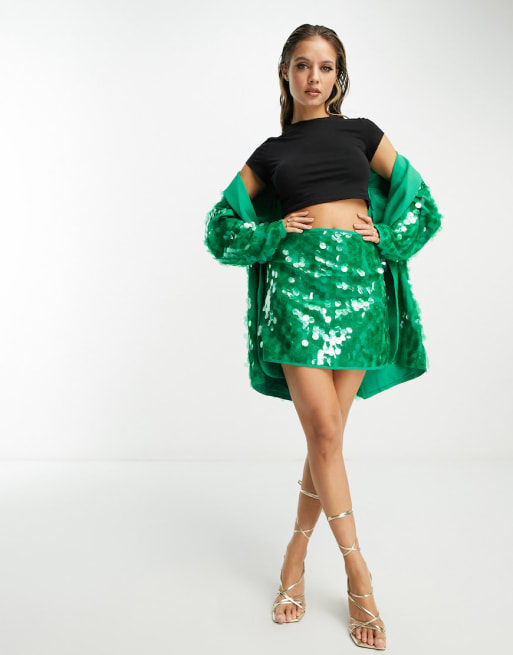 ASOS Edition - Coordinato verde con blazer oversize in paillettes e minigonna