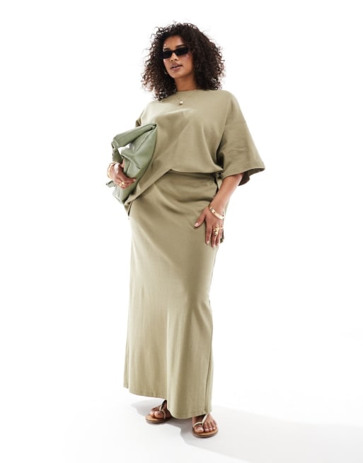 ASOS Edition Curve - Coordinato premium con T-shirt oversize in jersey pesante e gonna lunga