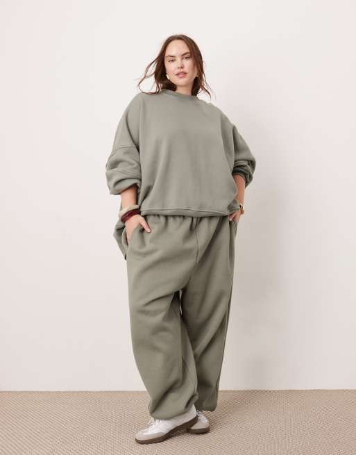 ASOS EDITION Curve - Felpa premium pesante con cuciture e joggers verde oliva