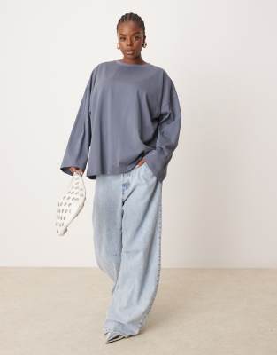 ASOS EDITION Curve - Maglietta a maniche lunghe oversize in cotone premium pesante blu ardesia