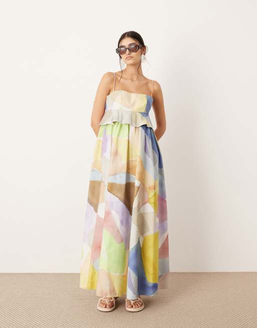ASOS Edition - Empire - Vestito midi con spalline sottili e stampa astratta in colori pastello