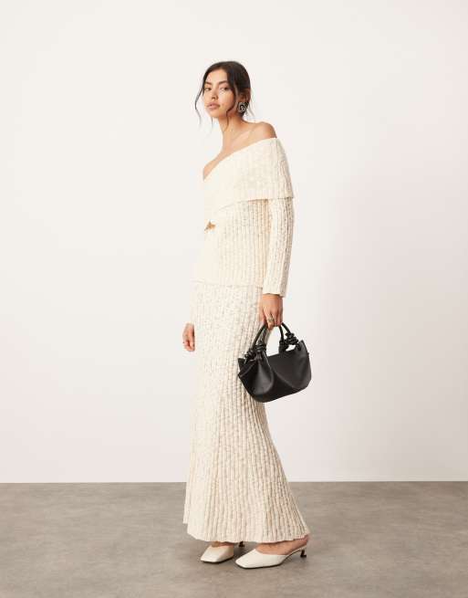 ASOS Edition - Gonna lunga in maglia crema in coordinato